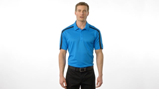A stripe on the front, back, shoulders and sleeves adds bold contrast to our high-performance polo that wicks moisture and resists snags. PosiCharge® technology delivers exceptional colorfastness and optimal printability.